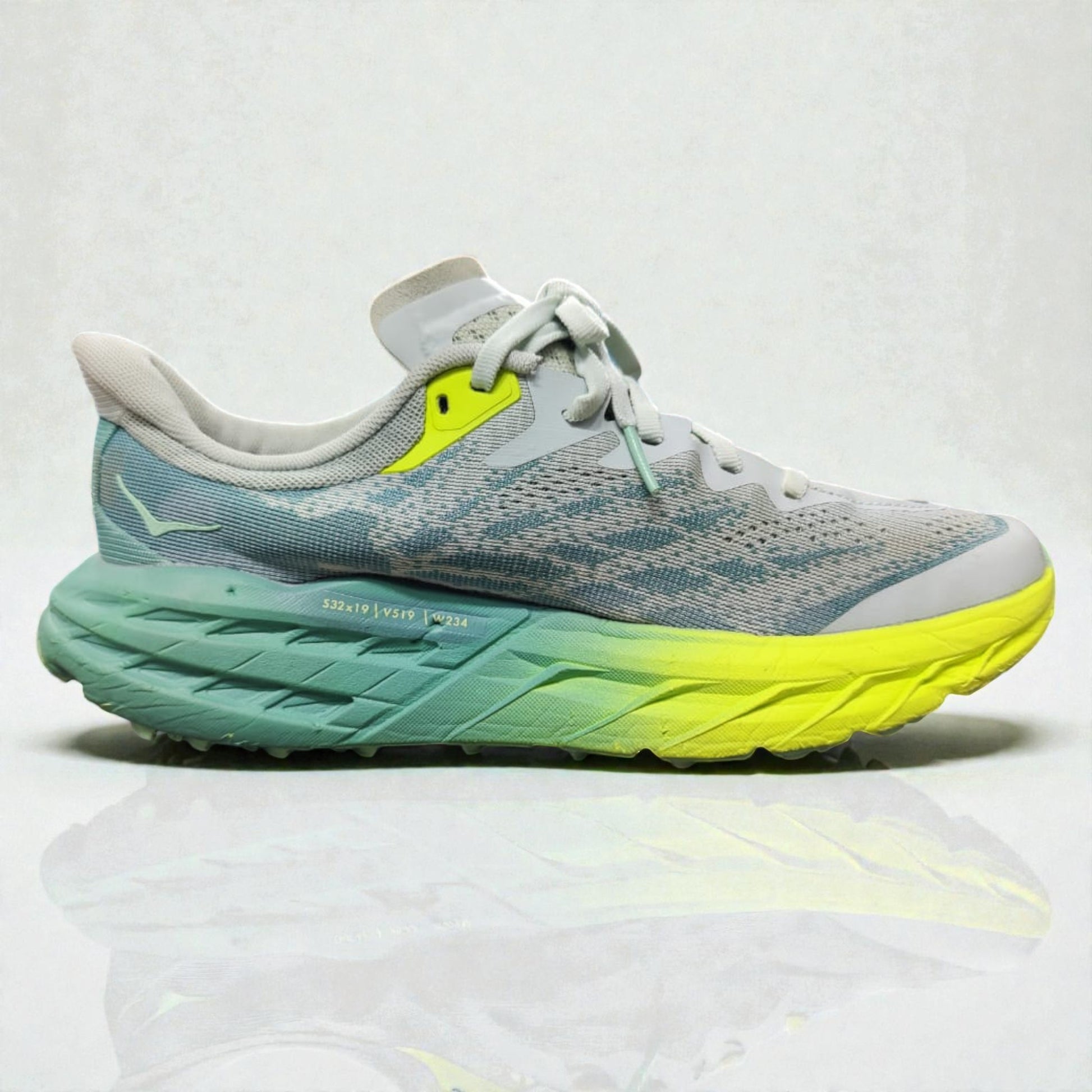 Dominate every trail with the HOKA Speedgoat 5 in a sleek Grey color. Built for serious trail runners and outdoor enthusiasts, the Speedgoat 5 is known for its exceptional grip, lightweight cushioning, and rugged durability, making it perfect for challenging terrains and long-distance adventures.